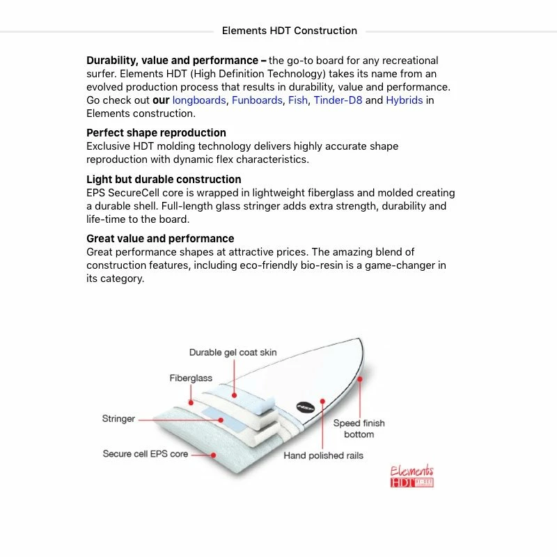 Hyper résistante, elle intègre la construction moulée Element HDT pour des boards hyper légères et d’une robustesse inégalée.