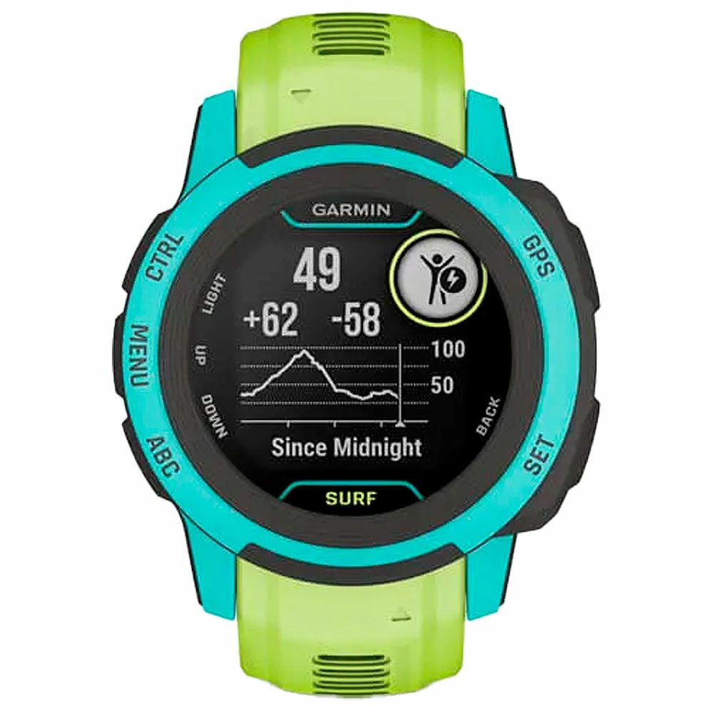 La montre Instinct 2S Surf édition de chez Garmin est plus légère que sa premire version, la Instinct 2. C’est également une montre légère et compact qui offrent plusieurs fonctionnalités. Elle pourra vous accompagné durant vos actiités sportives avec une autonomie allant jusqu’a 21 jours (50 jours en mode éco).
