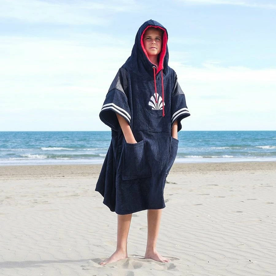 Un large poncho à capuche en éponge qui s’enfile comme un pull et sous lequel votre ado pourra se changer ou rester sur la plage.